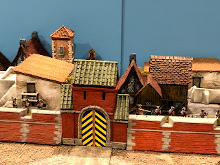 I set the archway up alongside the Vauban walls and it matched up well size-wise. Then I remembered I still had a box with the rest of the Kobblestone Mediterranean village set in it, including a 2nd, more elaborate, archway. The strangest part of this is that the Kobblestone Mediterranean Village actually belongs to the same friend of mine, and he sent it to me to paint for him long ago, which I’m sorry to admit I never got around to doing. On the bright side, if I had done so, his Vauban fort would not have upgraded its entrance!