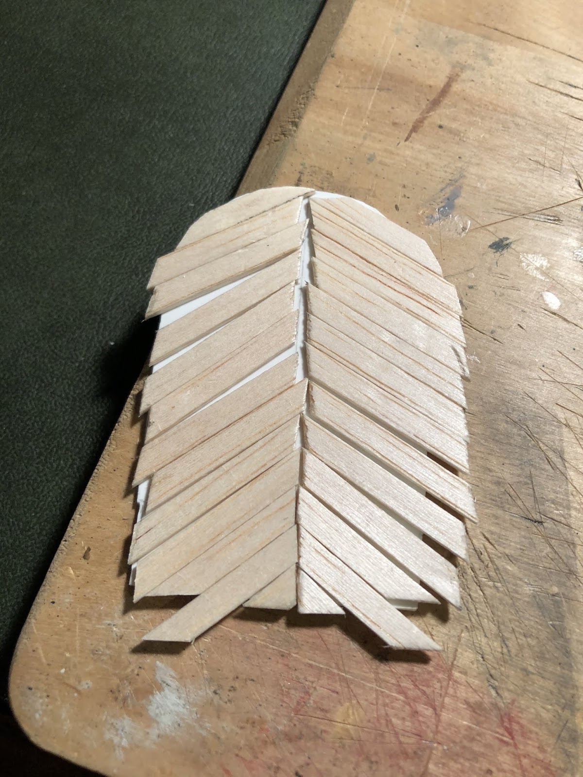 Since the reverse side of this door would be visible, I decided to build it also. I cut one solid piece of balsa to size and then added some details…